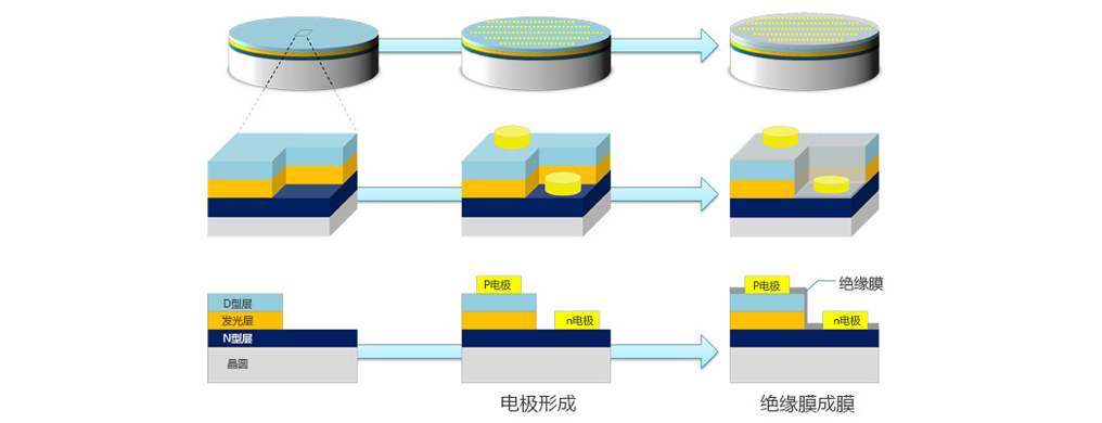 這個過程是制造LED的核心過程。2014年的藍色LED研究獲得了諾貝爾獎,之所以獲獎是因為經此過程,LED的質量得到了顯著改善,使得制造實用藍色LED成為可能。獲獎的原因之一是,正如這里所提到的,通過采用一種稱為雙流法的方法,用兩種原料氣體以供晶體生長,因此制造出更優質的晶體。此外,p型層的激活,低溫緩沖層等LED的晶體生長膜方法,在許多技術的積累之上實現了制造出本世紀的藍光LED。