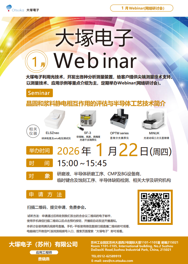 2025/10/23 15:00~16:00,蘇州線上講習會,由日本粒徑測量專家講解的DLS測量方法技巧介紹,DLS測量和分析原理、樣品制備的注意點、測量·解析時的故障排除說明。